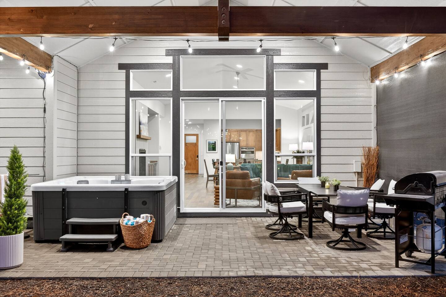 Downey Pines Retreat โ where modern luxury meets mountain magic in this one-of-a-kind Sunriver escape. ๐ 4 King beds + bunk room w/ 4 Full beds ๐ RV parking w/ full hookups and dump station โจ๏ธ Private covered hot tub ๐งโโ๏ธ Infrared sauna ๐ฅ Fire pit + Adirondack seating โจ Twinkle-lit outdoor lounge ๐ฎ Polycade arcade ๐น Infinity game table ๐ Basketball Hoop ๐๏ธ Peloton Tread ๐ป Starlink Internet ๐ฟ Ski drop + boot warmers ๐ฒ 4 cruiser bikes + dual-seat bike trailer ๐ป 4 RC trucks