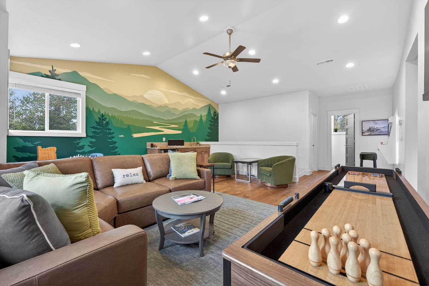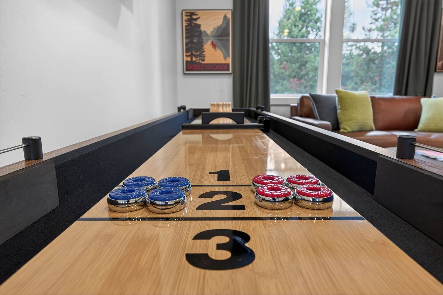 Welcome to Downey Pines Retreat, a private getaway tucked among towering pines in Sunriver. Designed for connection, relaxation, and unforgettable group experiences, this home blends upscale design with resort-style amenities โ just 20 minutes from Mt. Bachelor and minutes from Sunriver Village. Whether you're soaking in the hot tub after skiing, warming up in the infrared sauna, or gathering around the fire pit under star-filled skies, this is more than a stay โ itโs a memory-making destination. ๐ก THE SPACE โ 5 Bedrooms | 3 Bathrooms | 3,400 sq ft โ Starlink Internet โ Sleeps large families & groups comfortably โ Open-concept living designed for togetherness โ Forest views from nearly every room Sleeping Setup ๐ 4 King Bedrooms โข Hotel-quality mattresses & linens โข Thoughtfully styled, boutique-hotel feel โข 50-55" TVs in each King bedroom ๐ Bunk Room โข Four Full-size beds โข Perfect for kids, teens, or cousin sleepovers ๐ฝ KITCHEN & GATHERING The heart of the home. โข Large granite island for cooking & conversation โข Fully stocked chefโs kitchen โข Coffee station (drip + pods) โ โข Spacious dining for shared meals and game nights This is where mornings start slow and evenings linger. ๐ฎ UPSTAIRS GAME LOUNGE A favorite space for both kids and adults โ perfect for winding down after a day on the mountain or river. โข 65" TV for movies and game nights โข Polycade Sente arcade system โข 32" Infinity Game Table with digital board games โข Shuffleboard table โข Chess & backgammon table โข Full poker set + classic games like mancala โข Traditional boards games and custom Oregon cribbage board โข Wet bar for easy snacks and drinks Itโs the kind of space where friendly competitions turn into lasting memories. ๐ฟ OUTDOOR EXPERIENCE Step outside and breathe it in. โข Peaceful pine-filled lot โข Fire pit gatherings under the stars โข BBQ grill & patio dining โข 2 minutes to private river access ๐ โข Quiet, nature-immersed setting Coffee tastes better out here. So does beer and wine. ๐ RV-FRIENDLY SETUP For guests traveling by RV or hosting friends arriving on wheels, the property offers RV parking with full hookups and a dump station. Itโs an uncommon convenience in this area and provides extra flexibility for larger gatherings and longer stays. ๐ LOCATION PERKS Adventure meets convenience. โท 20 minutes to Mt. Bachelor ๐ฒ 10 minutes to Sunriver Village ๐ฎ 5 min to Century Commons โ food trucks & taps โณ Near multiple golf courses ๐ฅพ Close to trails, river activities & hiking ๐ป Easy drive to Bend dining & breweries PERFECT FOR โ Luxury family vacations โ Multi-family trips โ Ski weekends โ Golf getaways โ Holiday gatherings โ Summer river & biking retreats ๐พ PETS Dogs considered with prior approval + pet fee. We love responsible pet owners who treat the home like their own. ๐ญ HOUSE NOTES โข No smoking or vaping anywhere on property โข Septic system care required (only toilet paper flushed, no grease/oils/grounds in drains) โข Quiet hours 10 PMโ8 AM Simple guidelines that keep the home beautiful for everyone. ๐ WHY GUESTS LOVE DOWNEY PINES Because it doesnโt feel like a rental. It feels like your own private mountain lodge โ thoughtfully designed, fully equipped, and built for connection. If youโre looking for a stay that blends luxury, comfort, and natureโฆ Downey Pines Retreat is ready to welcome you. DCCA #825530
